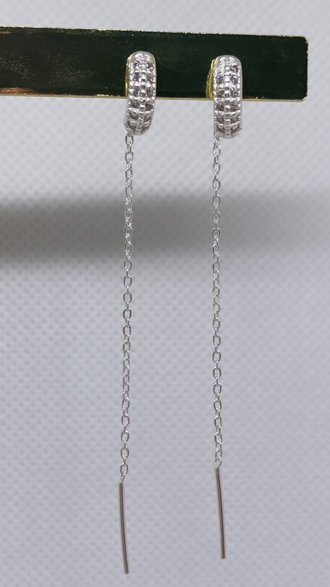 Brinco em corrente meia argola em prata 925 com cravejado de Zircônia Branca.
